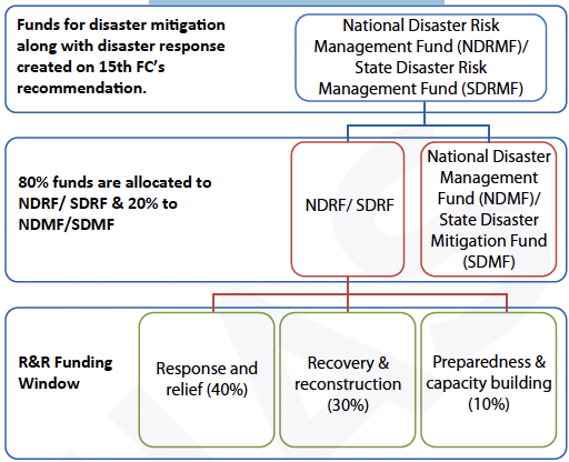 - Funds from the NDRF & SDRF will be distributed for response and relief, recovery & reconstruction, and preparedness & capacity building.