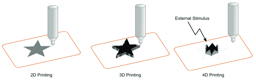 - Objects created through 4D printing have the ability to alter their shape or function in reaction to external factors like heat, light, or moisture.