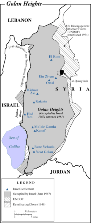 - Israel took Golan Heights from Syria in 1967.