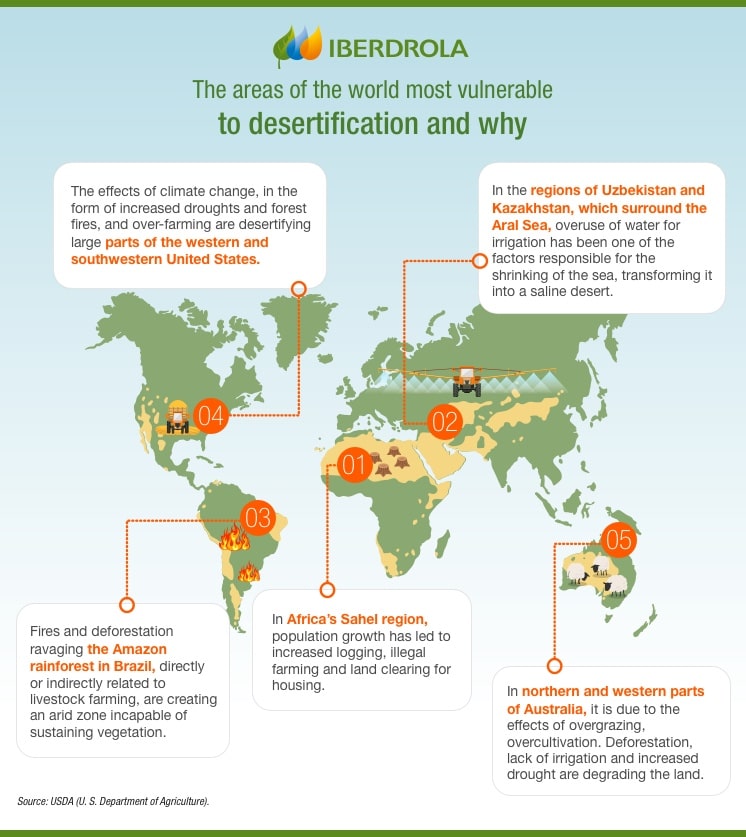 • Africa and Asia are the most affected areas in the world by desertification.