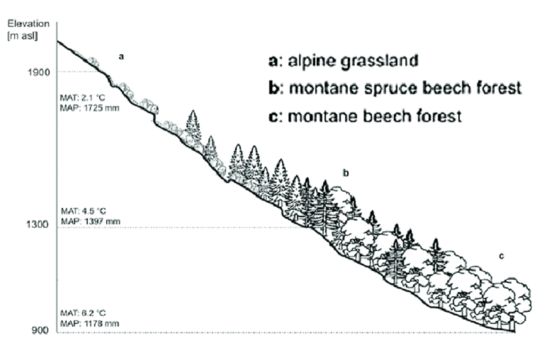 - Slopes facing toward the Sun are exposed to direct solar rays, raising soil temperatures and increasing evapotranspiration.
