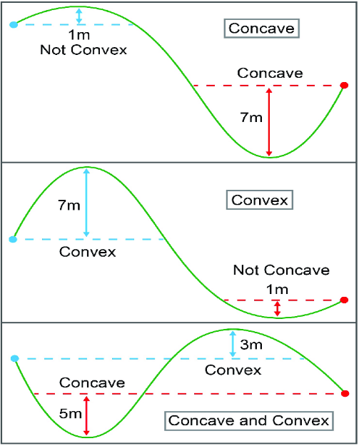 - Slope configuration is either convex or concave.