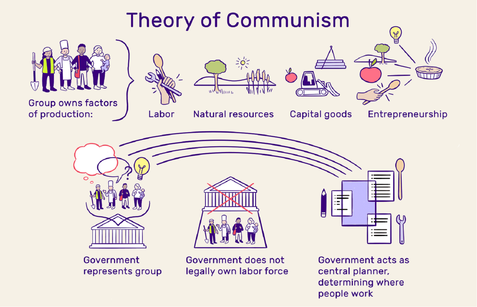 - एक कम्युनिस्ट समाज में निजी संपत्ति, सामाजिक वर्ग, धन और राज्य की अनुपस्थिति भी शामिल है।
