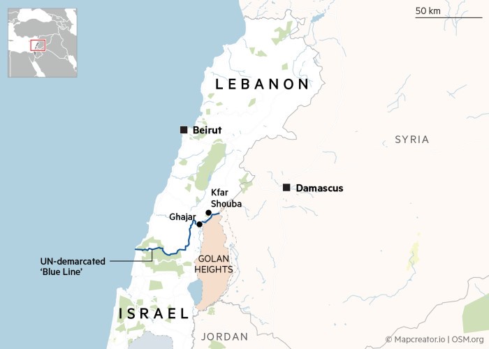 • ब्लू लाइन संयुक्त राष्ट्र द्वारा 2000 में इजरायल और लेबनान के बीच अलगाव को चिह्नित करने के लिए स्थापित एक सीमा है।