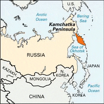 - पश्चिम में ओखोटस्क सागर और पूर्व में प्रशांत महासागर और बेरिंग सागर के बीच स्थित है।