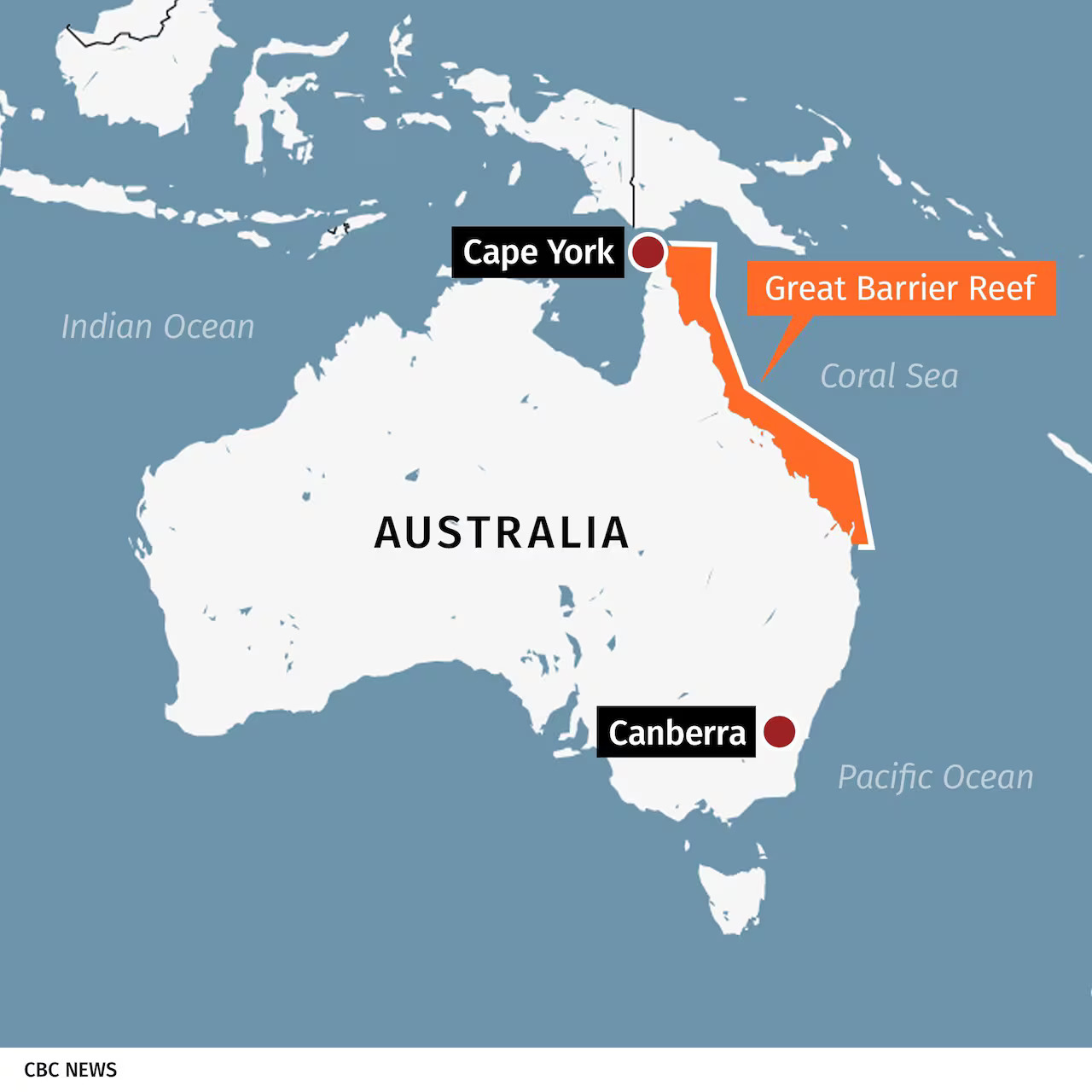 - ग्रेट बैरियर रीफ (GBR) ऑस्ट्रेलिया के पूर्वोत्तर तट के साथ 2,300 किलोमीटर से अधिक तक फैला है