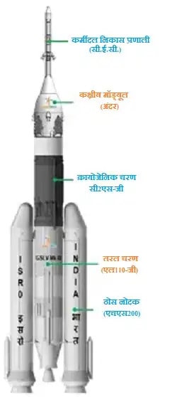- ठोस, तरल और क्रायोजेनिक चरणों के साथ तीन चरण वाहन।