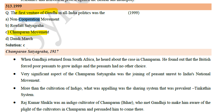 1. Champaran Satyagraha was Gandhi ji first experiment in India. Here, it is difficult to make such strong statement about Sedition. (See UPSC 1999 PYQ Below)