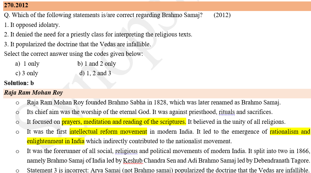 ● Statement 1 is correct: Raja Ram Mohan Roy had a profound appreciation for the traditional philosophical systems of the East. He studied ancient Indian texts and was deeply influenced by the Upanishads and Vedas, which he believed contained valuable philosophical insights.